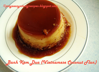 Wandering Chopsticks, i got this tempting vietnamese version of coconut flan, immediately i got stick to this dessert and i really want to give a trial...We loved this flan much and its tastes really marvellous and delicious...I have added few tablespoons of dessicated coconut to this flan else i have prepared everything as the original recipe went for...